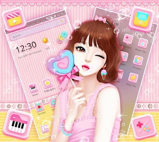 Unduh Tema Candy Cute Pink Girl untuk perangkat Anda.