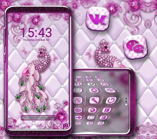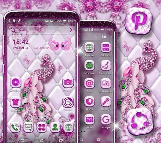 • Pink Peacock Diamond Launcher Theme cool wallpapers with a variety of touch gestures.
