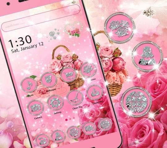 Tema Pink Rose Diamond memiliki gambar latar berkilau dan pak ikon berkilau, yang membuat ponsel Anda menonjol dibandingkan dengan ponsel teman-teman Anda. Kadang-kadang Anda merasa seperti mengubah tema gaya berkilau untuk membuat Anda gembira. Maka jangan ragu untuk memasangnya.