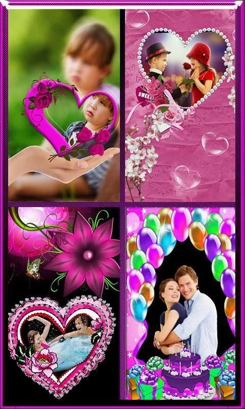 1) Bingkai Foto: 3 Jenis foto bingkai Cinta, Pink Flowers, Ulang Tahun Balon tema Foto frame untuk gambar galeri Anda dan juga pilihan untuk menambahkan stiker dan teks dengan berbagai jenis font dengan operator color.After menetapkan pilihan bingkai foto untuk mengatur hidup wallpaper atau berbagi untuk yang cinta Anda.