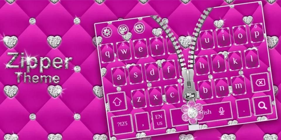 (GRATIS) pink Zipper Girly Berlian Keyboard Tema dapat diakses di Facebook, Facebook messenger, watsapp, watsapp messenger, jepret chatting dan Instagram, instagram utusan dan keyboard instagram, mistik dan mistik messenger.