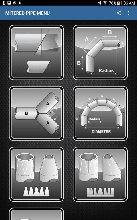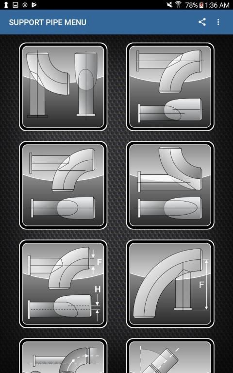 The Pipefitter Tools app also contains resources for The pipe industry and includes: