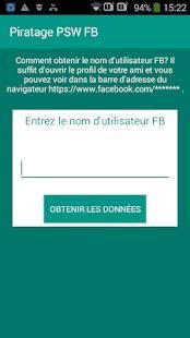 Piratage MDP FB est une application de faire semblant de pirater un compte Facebook juste en tapant le nom d'utilisateur du personne concernée