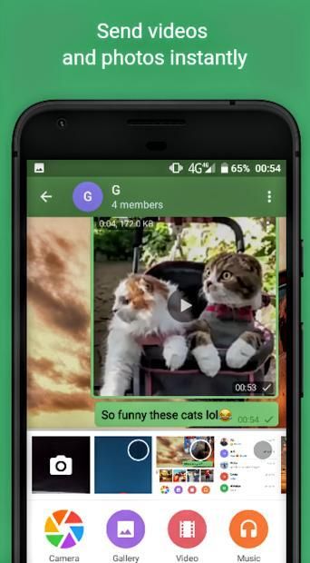 Share your photos and videos from the camera: record videos and take awesome selfies and send them with a tap. Record voice messages when you have to time.