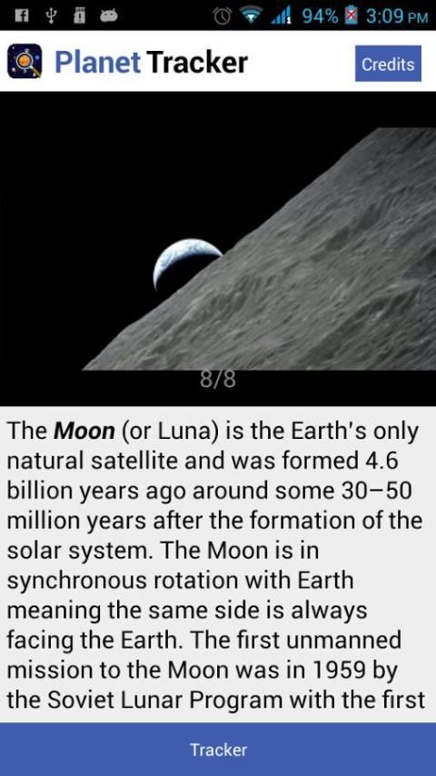 Planet Tracker membantu Anda menemukan posisi benda planet di tata surya. Hanya pegang perangkat Anda dan arahkan ke arah langit dan aplikasi akan mengisi layar dengan lokasi planet Anda mencoba untuk menemukan. Panah lokasi membantu Anda menavigasi ke posisi planet juga.