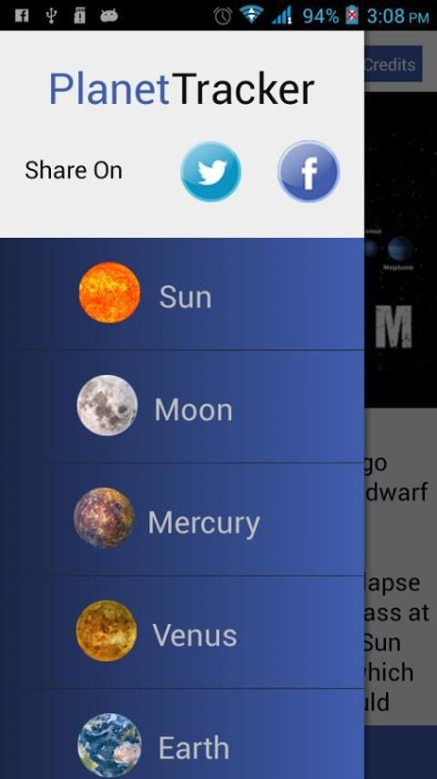 Lalu Planet tracker adalah aplikasi keharusan untuk memiliki. Ini memberikan Anda lokasi planet, Bulan dan Matahari dengan mengacu ke lokasi Anda.