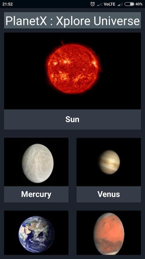 PlanetX aplikasi dikembangkan bagi mereka yang ingin mencari pengetahuan tentang Planet, Tata Surya, Galaksi dan Objek Antariksa lainnya. Aplikasi ini berguna untuk menciptakan minat anak-anak juga.
