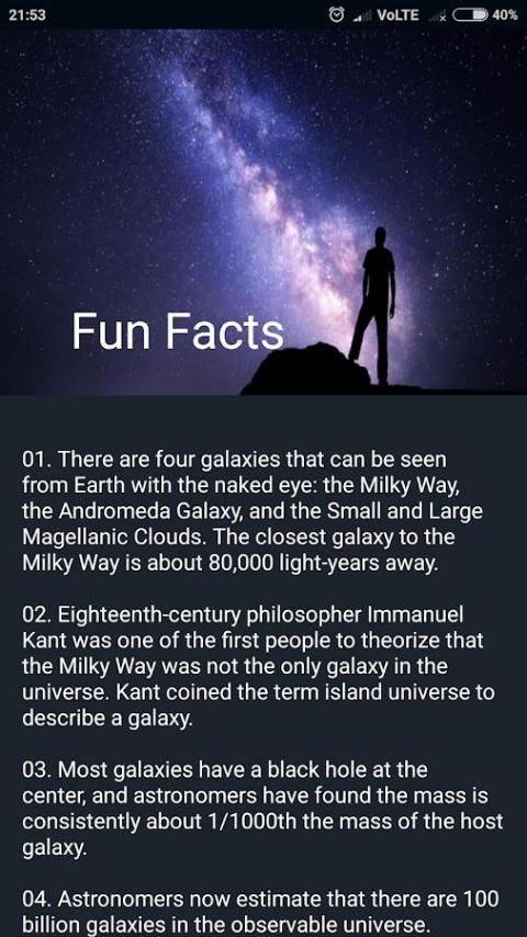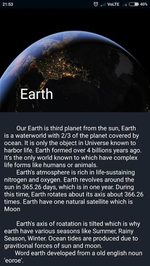 App termasuk deskripsi lengkap dari semua planet di tata surya kita. Hal ini juga termasuk menyenangkan fakta tentang Space.