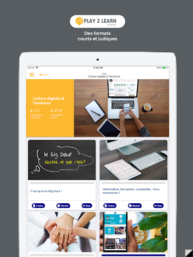 Dengan Play 2 Learn, mulai sekarang, Anda akan memiliki Academy by Area di saku Anda: solusi yang menyenangkan, inovatif dan intuitif untuk mengembangkan pengetahuan profesional Anda saat bermain! Mainkan 2