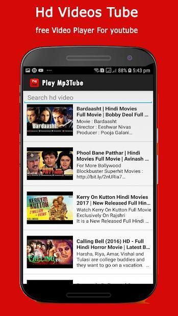Play Mp3Tube is a lightweight app to watch million free YouTube hd video songs, hd movies, entertainment video from phone music.