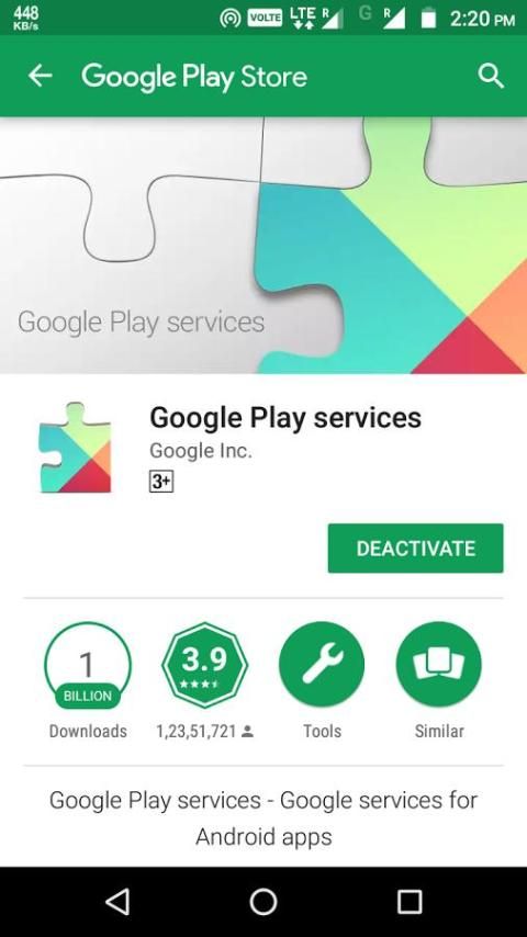 memeriksa status layanan Google Play. Ini menunjukkan nomor versi, tanggal instalasi dan tanggal update terakhir. Hal ini juga menyediakan link ke Play Store.