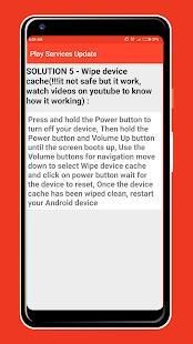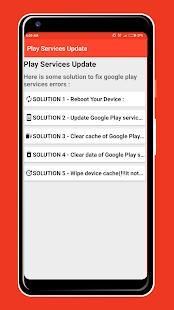 Pembaruan layanan pemutaran juga akan memberi Anda beberapa solusi untuk memperbaiki kesalahan layanan google play sehingga Anda dapat memperbaiki kesalahan "Gogle Play Services Stopped Working"