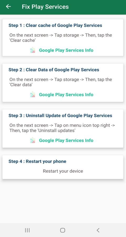 • One stop solution to fix issues and errors related to the play service.