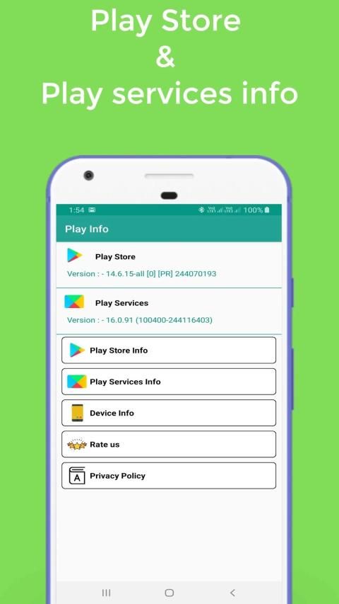 It's small utility app to check play services & play Store version, update, install status.