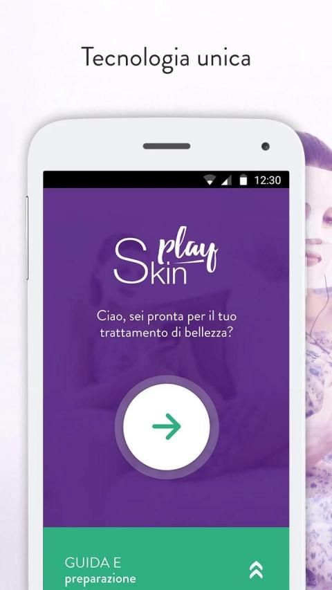 KULIT BERMAIN menggabungkan efektivitas masker kosmetik Hydrogel merangsang dan santai efek mikro-saat intensitas yang sangat rendah smartphone Anda. Gunakan BERMAIN KULIT mudah dan menyenangkan: Anda mematuhi masker anatomi, menghubungkannya dengan smartphone Anda dan, hanya dalam 10 menit sementara Anda bekerja atau bersantai, kulit Anda akan menjadi cerah dan terhidrasi, wajah Anda akan santai sebagai setelah 8 jam tidur.