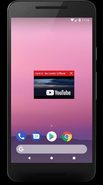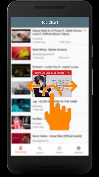 Play Tube provides multitasking experience: always in front of screen which help you use another apps while playing music or video.