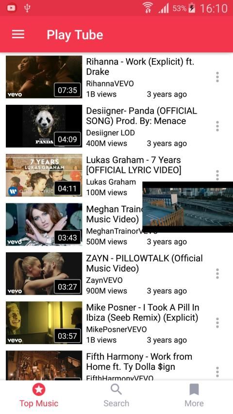 Play Tube provides multitasking experience: always on top popup player helps you to use your apps while playing non-stop YouTube free music.