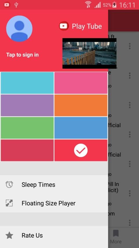 Play Tube memberikan pengalaman multitasking: selalu di atas popup player membantu Anda untuk menggunakan aplikasi Anda saat memutar musik gratis non-stop YouTube.