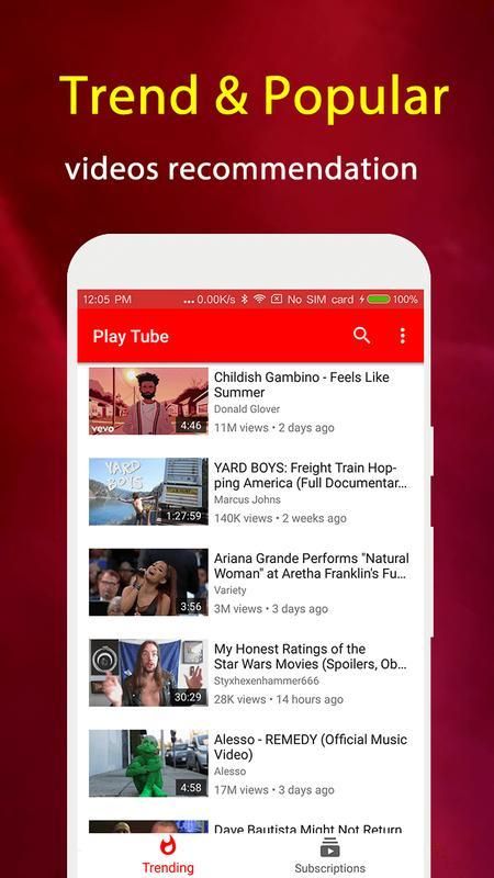 Play Tube - Video Tube Player adalah klien pihak ketiga lite gratis untuk YouTube, memungkinkan Anda untuk dengan mudah menemukan video hebat dan musik gratis di seluruh dunia dan negara Anda.