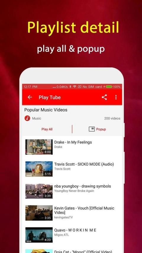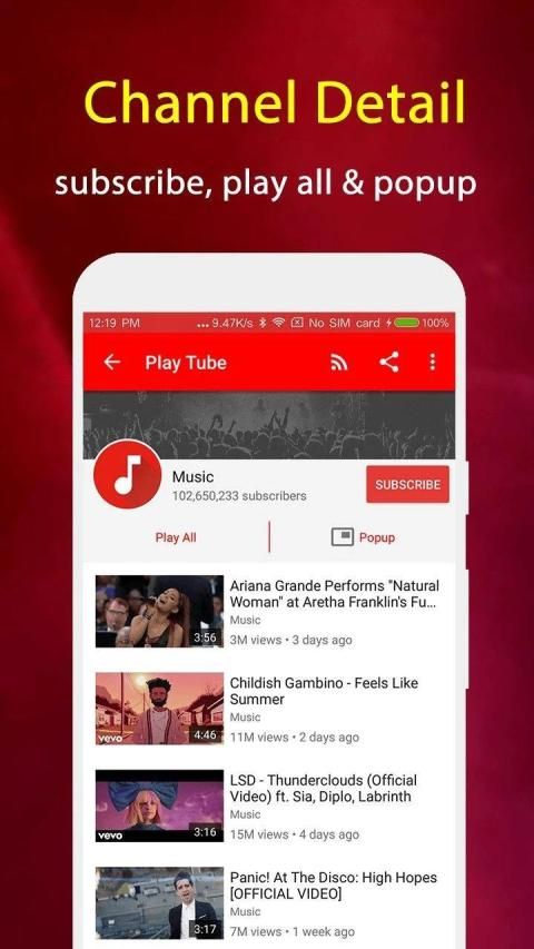 Play Tube & Video Tube Player can search videos, channels and playlists, play music tube and film tube with full screen or floating pop-up window that is always kept at the top. The floating tube popup player lets you use your applications while playing music and videos from YouTube.
