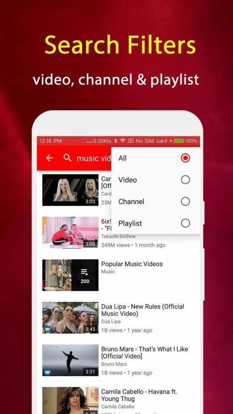 - Search videos, channels, and playlists