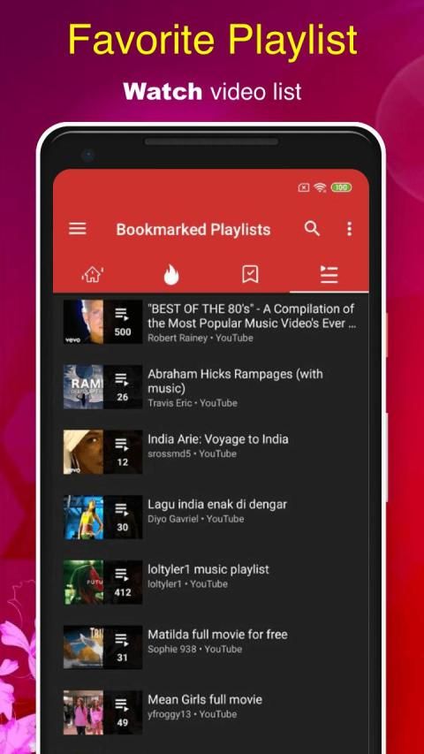 Mark your favorite videos and music, save the playlist. Play Tube video easily.