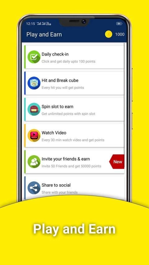 In Play and Earn app you can earn rewards using Hit and break cube, Spin slots, Daily check-in and much more.