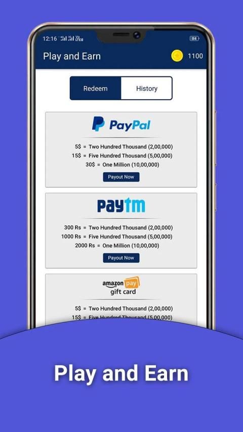 Play and Earn app pays faster and better to other earning app. You can redeem your points
