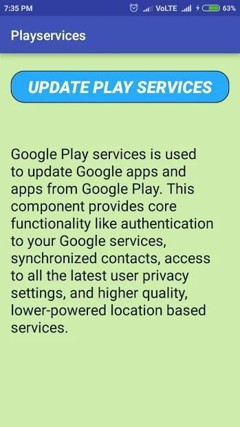 By using this Small utility app to check quickly the status of the Google Play services.By using this small utility app you get the information of version number,installation date and date of the last update.it also provides links to the play store,developer release notes and the app info dialog.