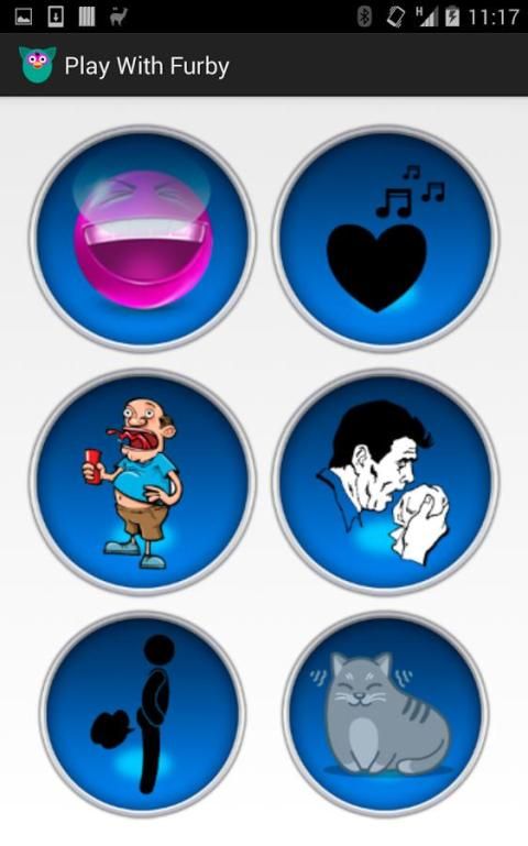 Aplikasi ini memungkinkan Anda untuk membuat Furby tertawa, menyanyi, bersendawa, kentut, mendengkur, bersin.