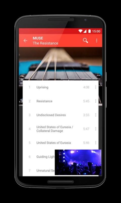 You can search any track, album or artist, explore music charts or weekly features music, music genres and tags, watch music videos and create playlists. As you found a song you can simply tap it and watch a music video. Simply drag to minimize or maximize the player.