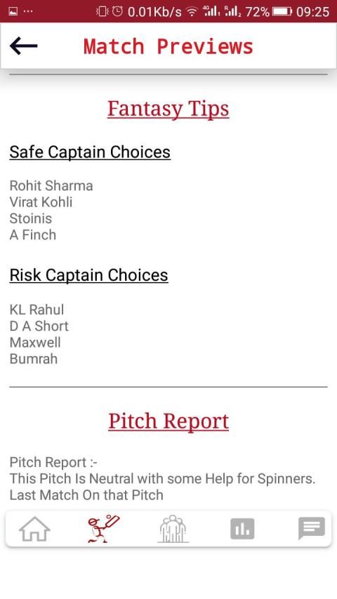 Our best feature is to provide Latest Updates on injured players or unavailable players and last 5 Performance of any player , ground Reports etc.