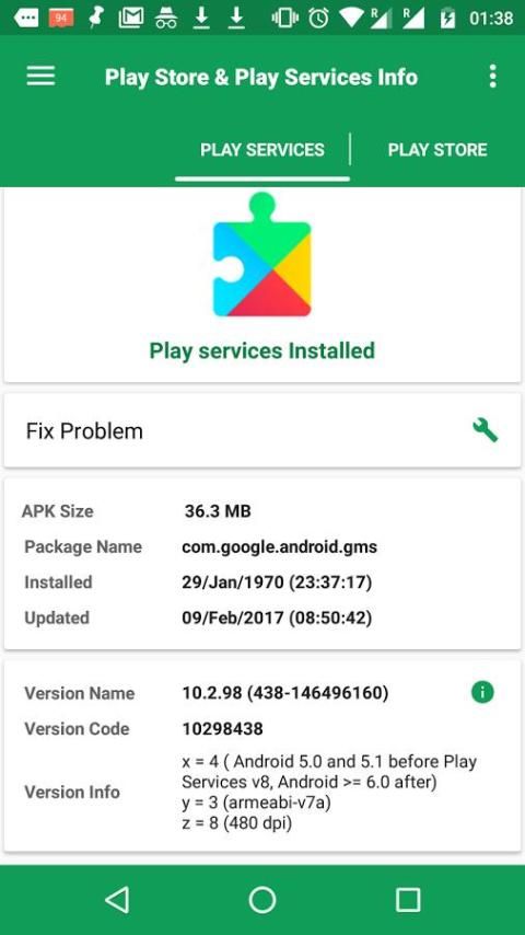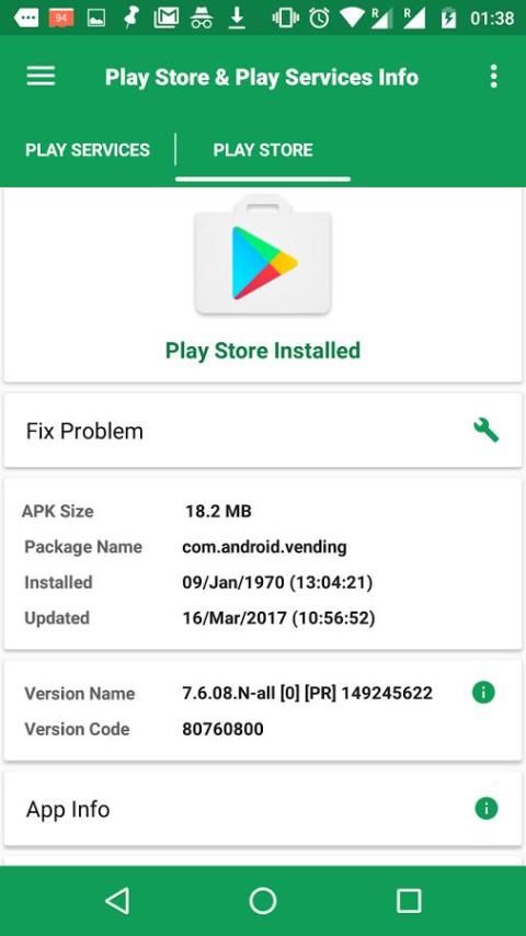 ★ App digunakan untuk memberikan informasi di bawah tentang Play Services & Play Store.