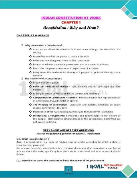 Class 11 Pol. Sci. (Indian Constitution at Work) Extra Solved Questions