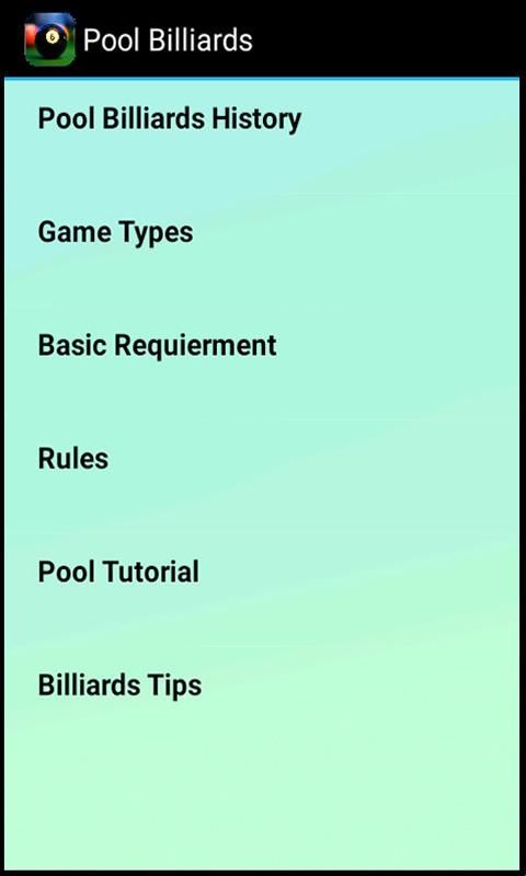 Pool or billiards is a game played on a pool table with 6 pockets, 15 object balls, and a cue ball. The 15 object balls are further divided into 7 striped balls, 7 solid balls, and a black number eight ball. Learn the pool billiards tricks and skills needed so that you can call the shots and sink the ball in every time, just like magic. -Know about game types of Pool Billiards. -Know the basic requirement. -8-Ball Rules. -Find good tutorial here.