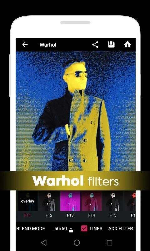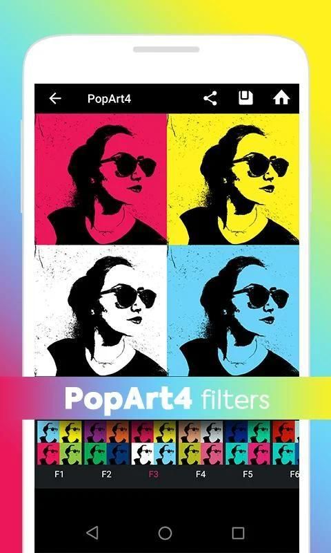 Change the colors that make up the picture in the PopArt menu : choose any color your smartphone screen can support.
