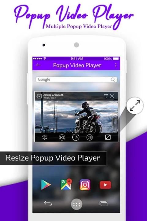 Sebuah pemutar video unik berguna ketika Anda ingin melakukan multitasking atau ingin melihat multi-video sebagai waktu. Popup video membantu Anda untuk menggunakan aplikasi multi bersama dengan menonton video. Anda bisa mengapung satu atau lebih video di aplikasi apapun dari layar utama dari aplikasi Anda. Anda dapat melakukan multi-tasking menggunakan pemutar video ini. Anda juga dapat mengubah ukuran video dengan pinch to zoom video.