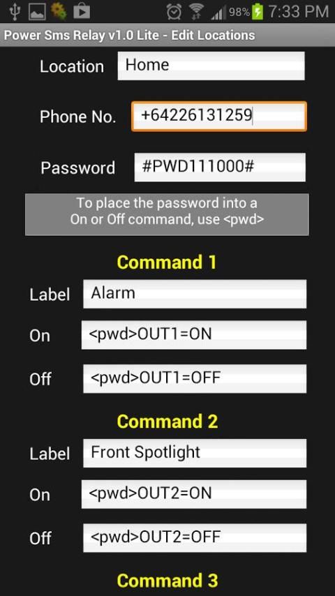 PowerSms Relay ditulis untuk mengotomatisasi pengiriman perintah sms ke "TURTLE" GSM-RELAY / GSM remote Relay Control ".