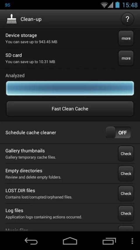 Gain extra storage by removing unnecessary cache and temporary files from your device’s internal storage, as well as from external memory cards.