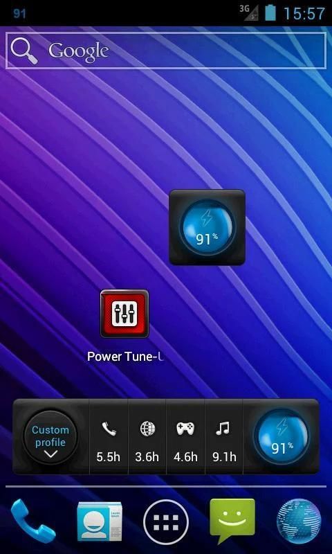 Pasang widget Daya Tune-Up untuk mengawasi waktu baterai yang tersisa.