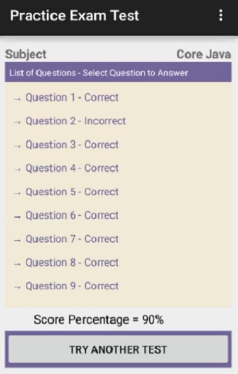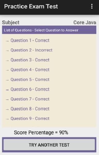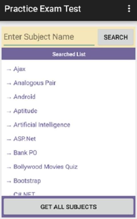 Pertama Anda dapat mencari subjek dengan mengetikkan nama subjek. Kemudian Anda dapat memilih hitungan pertanyaan Anda ingin menghadiri untuk ujian. Selanjutnya Anda akan mendapatkan daftar pertanyaan di mana dengan memilih pertanyaan Anda akan mendapatkan pertanyaan dan pilihan. Jika Anda memilih jawaban yang benar Anda akan menandai kekuatan positif dan jika salah maka kekuatan akan dihitung sebagai 0 tetapi memberikan Anda jawaban yang benar.
