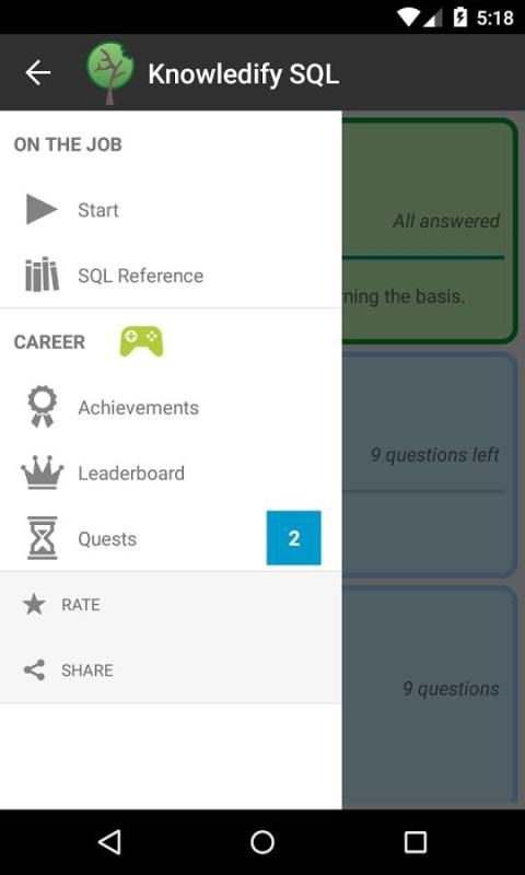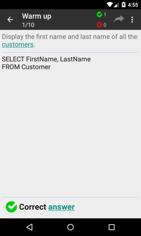 Berlatih SQL juga harus bebas repot dan (ya!) Menyenangkan. Dengan Knowledify, Anda akan memainkan peran seorang karyawan baru dipekerjakan. Melalui serangkaian tugas lebih dan lebih kompleks di sekitar sistem database baru yang Anda majikan baru telah dikerahkan, Anda akan bergerak ke atas dalam perusahaan dan menjadi ahli dalam seni SQL.