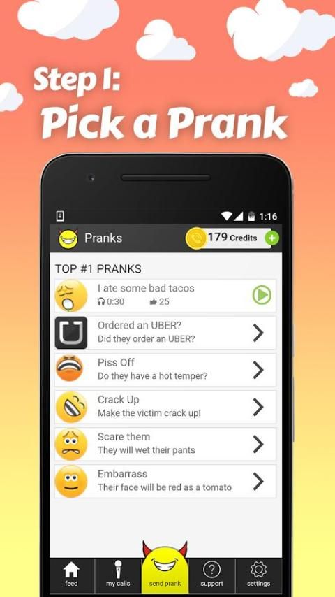 ✆ Tidak perlu mengubah suara Anda atau menggunakan changer suara, karena semua panggilan prank adalah pra direkam.