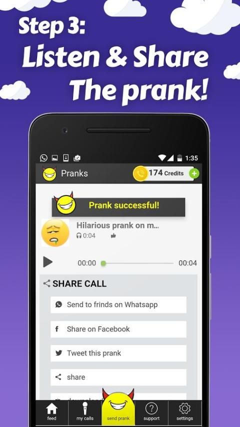 ✆ Prank rekaman disimpan di "My Pranks", sehingga Anda dapat mendengar mereka lagi kapan saja!