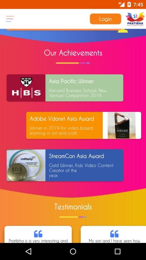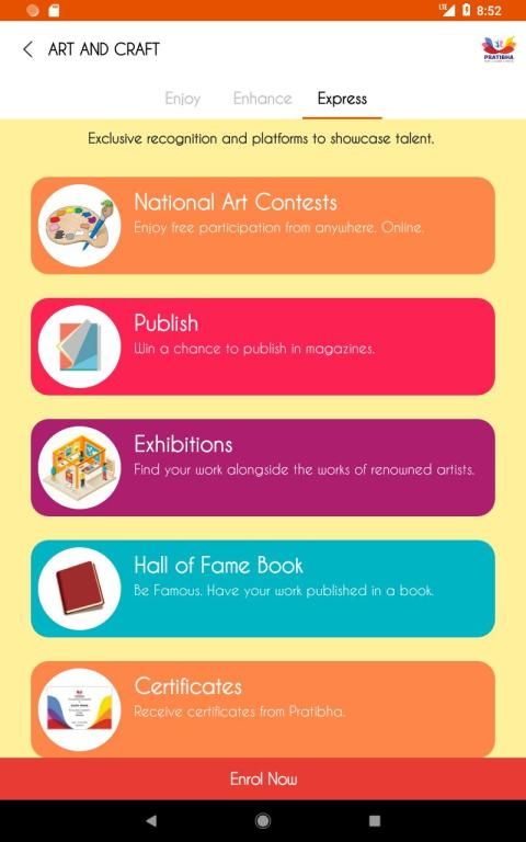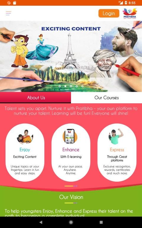 PRATIBHA is India's first holistic app to nurture and grow extra-curricular talent. Helmed by the ABP group, this initiative promises to create an exciting platform that will help youngsters Enjoy and learn exciting courses, Enhance their skills from anywhere, anytime, and Express their talent through a range of great platforms.