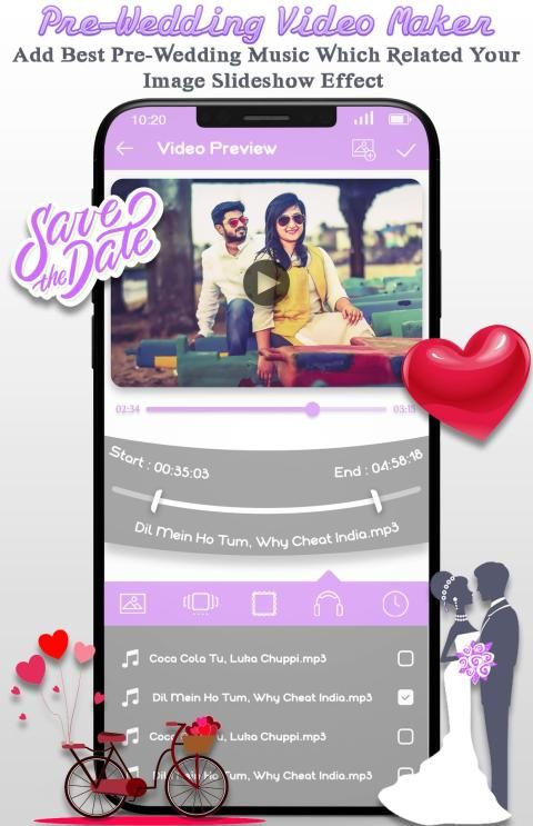 Pre-Wedding Video Maker can help you create video. Create your own Photo Video - slideshow video from images and music with latest added features and theme.