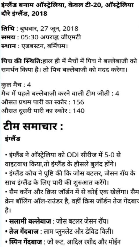 • All Fantasy Match info Provide In Both Hindi and English Language.
