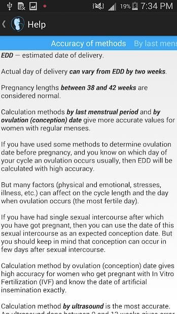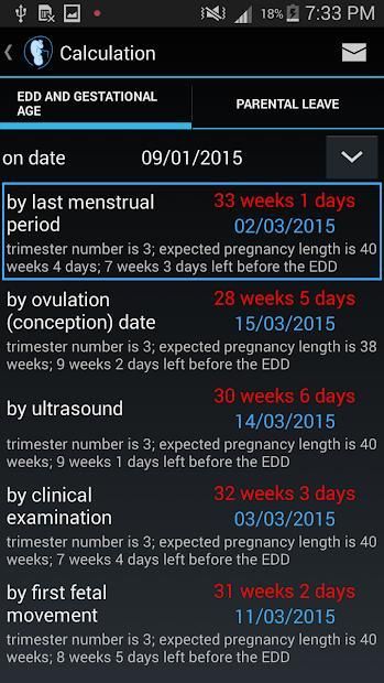 Dengan bantuan aplikasi ini Anda dapat menghitung tanggal yang diharapkan pengiriman (EDD) dan usia kehamilan diharapkan pada tanggal apapun.