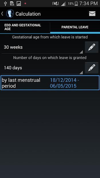 You can calculate range of dates (first and last date inclusive) for parental leave: just enter 1) gestational age from which leave is started and 2) number of days on which leave is granted.