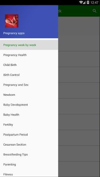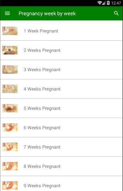 There's also a section "Pregnancy week by week" which describes all the steps.